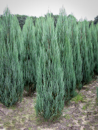 The privacy tree known as Juniper Wichita Blue is hardy is USDA hardiness zones 3 through 9, meaning in grows well throughout most of the United States. Juniper Wichita Blue is easily identified by its blue tones. Although this species can reach heights of 30 feet, the Juniper Wichita Blue is usually between 10 and 15 feet tall. The Juniper Wichita Blue is often used as a privacy screen or garden accent tree. If planting as a privacy tree, plant between 3 and 5 feet apart, as the eventual width of the Juniper Wichita Blue is between 4 and 6 feet.
