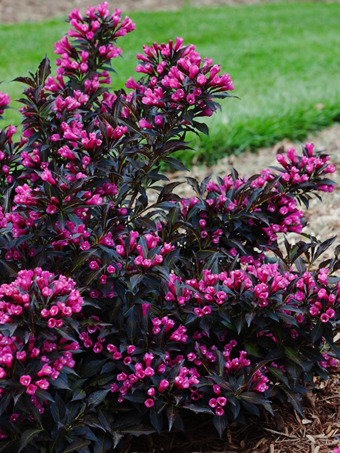 The smaller Weigela plants can be grown alone in the foreground spaces between larger shrubs, but they really excel as edging for beds, or in clusters in front of larger bushes.