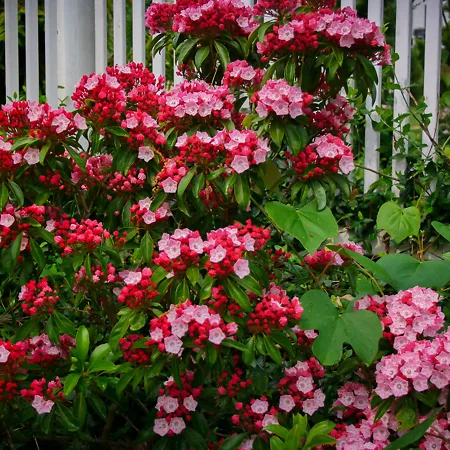 Foundation Planting -although we normally focus on evergreens for foundation planting, with good green foliage, you can have that, and enjoy flowers too. Evergreens like Camellias, Azaleas and Rhododendrons are perfect, or in colder areas the neat forms of some smaller Lilacs, such as the Fairy Tale® Lilacs, with names like Thumbelina or Prince Charming, bring flowers in their season, and great foliage for the rest of the summer. Varieties of the Korean lilac like these are always compact and rounded, with smaller leaves, but just as hardy as the larger French lilacs.