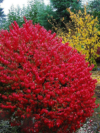 However, there is a smaller form of this plant, called ‘Compactus’, which only grows to around 10 feet in height. It has the same spectacular fall color, but a compact, dense and rounded form. Sadly, in colder areas this form is prone to some winter damage, with younger branches being killed. To overcome this limitation a form called the Fireball Burning Bush has been developed which is even smaller, growing to just seven feet tall and this great plant is totally free of winter-kill even in the coldest parts of the country. It is the Burning Bush of choice for those who want the best.